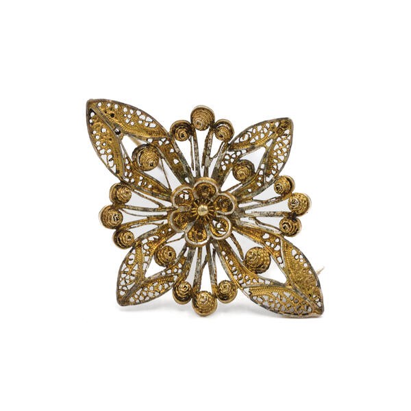Brosche in 800er Silber vergoldet Antik flöral verziert Brooch silver