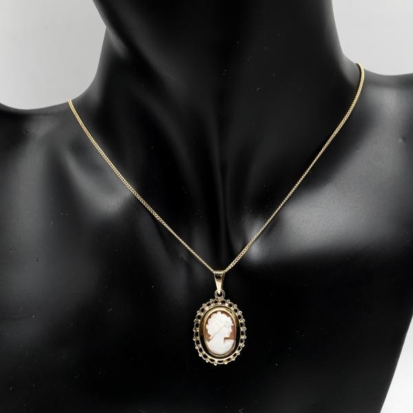 Anhänger mit Muschelgemme Gemmenanhänger 8 Kt. 333 Gold Kamee Tracht
